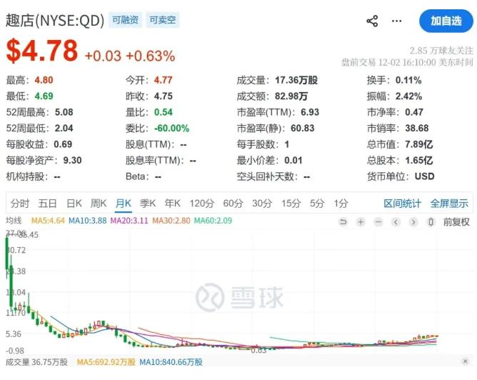 近日,美股趣店发布了2025年第三季度报,其中数据让见惯了风浪的拓品编辑部也颇感惊奇。第一个让人无语的点是:公告显示,趣店目前市值7.89亿美元,约合人民币55.7亿。但第三季度总营收为850万人民币,同比2024年第三季度下降了85.5%。也就是说,一家市值大几十亿的上市公司、而且是财务审查非常严格的美股上市公司,三个月的时间内只做了850万人民币的流水,甚至比不上国内的一些家庭式作坊工厂,堪称离谱。不过回看趣店的业务布局和具体情况,也能理解——最近两三年,趣店陆续蹭过跨境电商平台、预制菜、汽车零售、在线教育等各种热点风口,但后来又全部放弃。最后这850万人民币的营收,来自于公司的“最后一公里配送业务”,可也在逐步缩减中。趣店实际上陷入了没有主营业务可做的怪状,总营收大幅下滑也在情理之中。但这就牵扯到第二个让人奇怪的点:同样是在第三季度,趣店归属股东净利润高达4.099亿人民币,较2024年第三季度增长了近2倍。没有主营业务,那大幅增长的利润到底从哪来的?公告中将其解释为利息及投资收益净额的增加——趣店目前手里握着的现金和现金等价物高达70多亿人民币、以及受限现金15.18亿人民币。这笔钱被趣店大量购买衍生金融工具,再赶上第三季度全球股市表现良好,衍生工具关联的公司、债券等报价上涨,使得趣店在这块投资的整体收益高达144%、相比2024年第三季度多赚了4370万人民币!堪称投资大师。除了投资衍生金融工具外,趣店还有大量的短期投融资活动和借款,虽然财报中并没有提及详细类目。不过我们大胆猜测一下,可能有一部分是短期拆借、过桥等带来的收益,属于回到老本行了,只不过对象从个人变成了公司。也就是说,趣店现在哪怕什么主营业务都不做,凭借已经攒下的近百亿家底做一些低风险理财,就已经足够碾压A股大多数上市公司了。